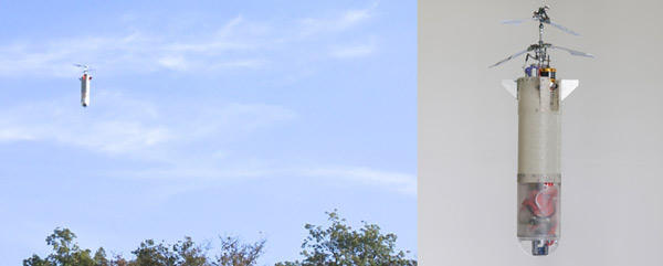 De plus, le drone possède une caméra capable de filmer dans deux directions différentes grâce à un prisme séparateur, et d’envoyer les images en temps réel (une suggestion du GIGN).