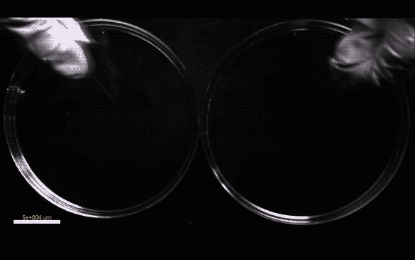 Bon, pour le moment, seuls des animaux ont été testés ; mais la technique, originale, semble prometteuse, à condition de pouvoir maîtriser davantage la déperdition des molécules, puisque l’explosion provoquée est aujourd’hui isotrope, et propulse les agents dans toutes les directions. L’image ci-dessous montre l’explosion de la poudre (à droite) par rapport à la même diffusion sans l’agent propulsant.